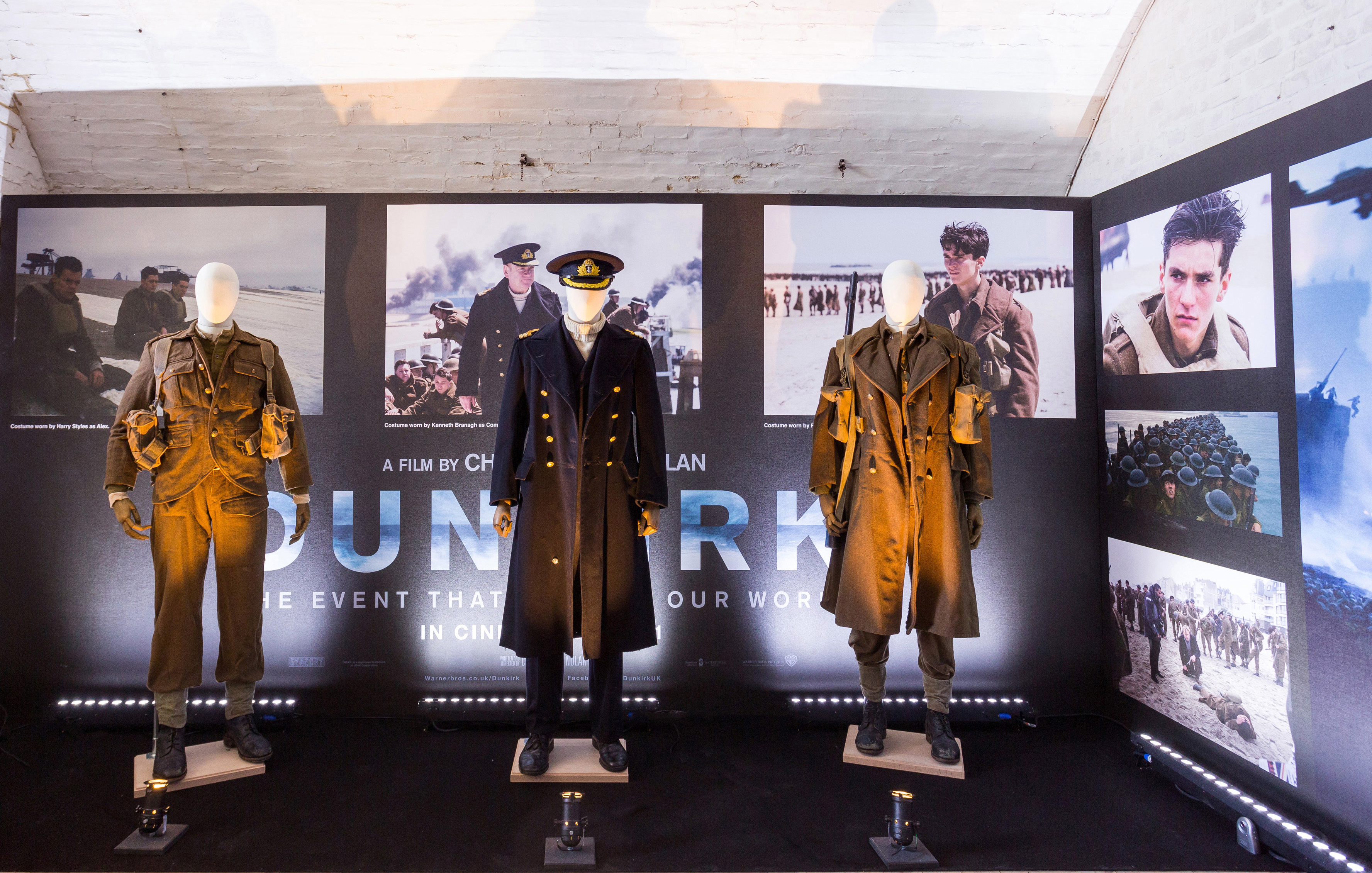 Costumes worn by Kenneth Branagh, Harry Styles and Fionn Whitehead in the upcoming film Dunkirk are featuring in an exhibition at Dover Castle.