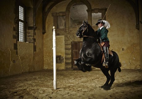 The intricate displays of circles, turns and leaps are performed to evocative Baroque music, with riders dressed in the frills, feathers and high boots of the Cavalier period.