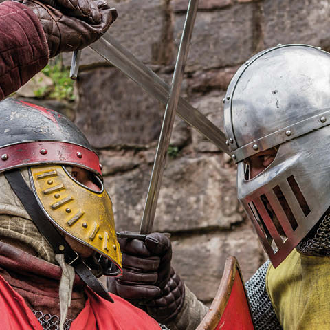 • 11am - Accepting the Challenge & Sword and Buckler. Choose your knight and cheer for your favourite as they accept the challenge and head straight into the first competition: swords and bucklers! Can our knights defend themselves with such small shields?