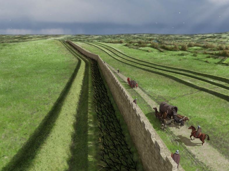At each mile along Hadrian's Wall there was a guarded gate protected by a fortlet, or 'milecastle'.