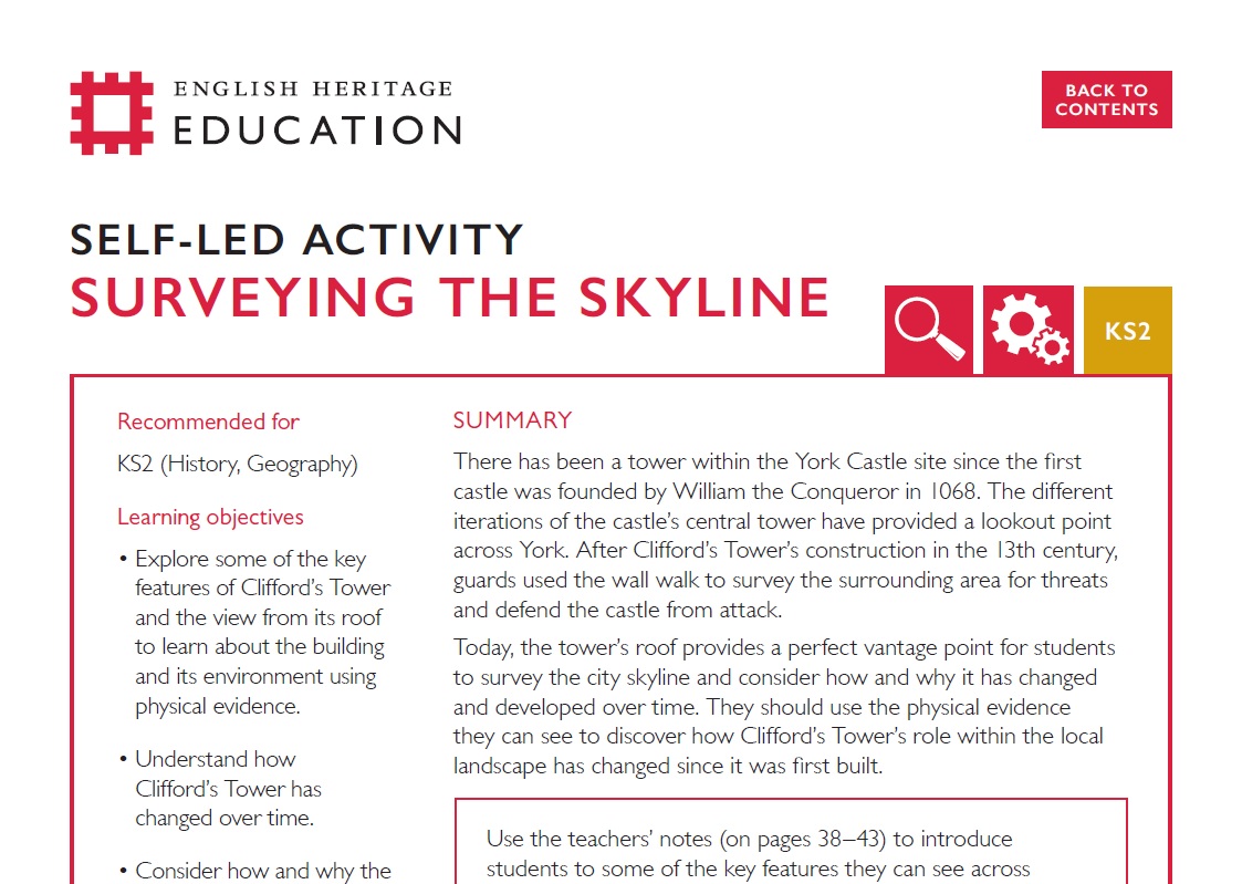 Enjoying spectacular views across the city, students can spot the natural defences provided by the landscape; identify the links between the tallest buildings, and find evidence of York’s industrial heritage.