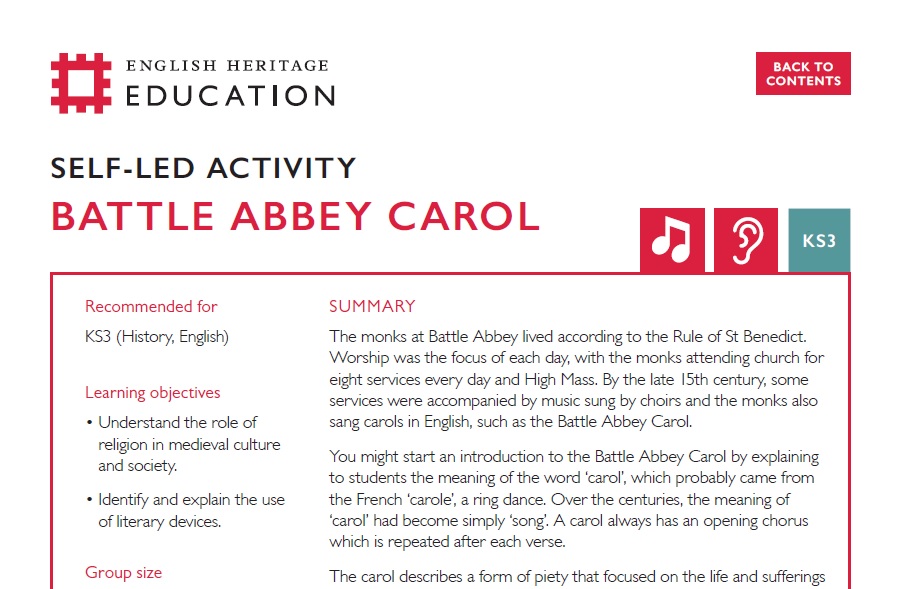 Battle Abbey Carol (KS3) - Battle Abbey Teachers' Kit