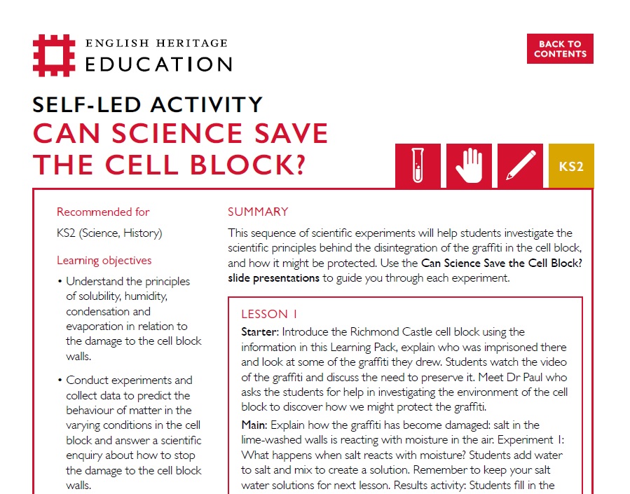 Can Science Save the Cell Block? (KS2) - Richmond Castle Cell Block Learning Pack