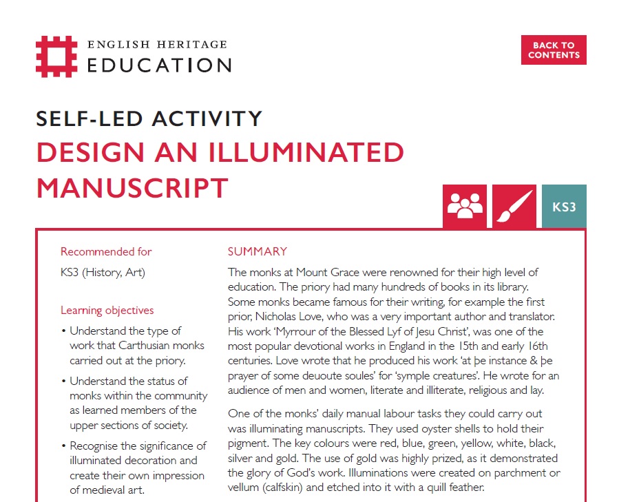 Design an Illuminated Manuscript (KS3) - Mount Grace Priory Teachers' Kit