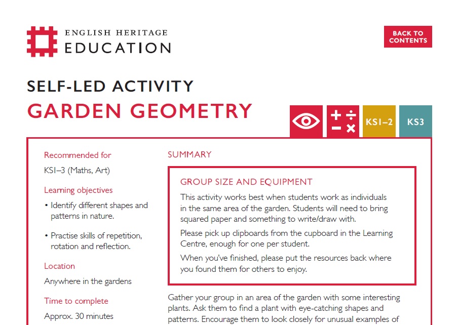 Inspire your learners with activities related to the building of Stonehenge, balancing Battle Abbey’s finances, calculating the unique geometry of Orford Castle, and creating their own patterns in their garden or local park.