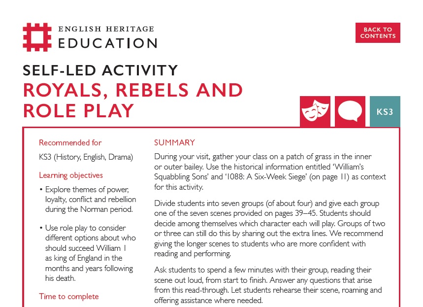 Royals, Rebels and Role Play (KS3) - Pevensey Castle Teachers' Kit