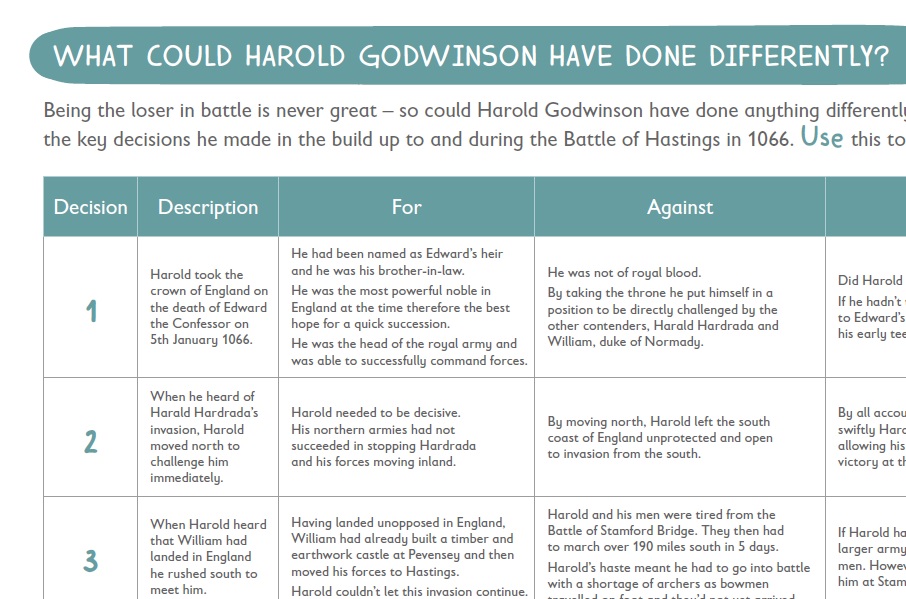 Could Harold Godwinson have done anything differently leading up to and during the Battle of Hastings in 1066? Use this activity to draw your own conclusions.
