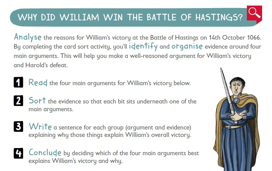 Analyse the reasons for William’s victory at the Battle of Hastings. Identify and organise evidence to make a well-reasoned argument for William’s victory.