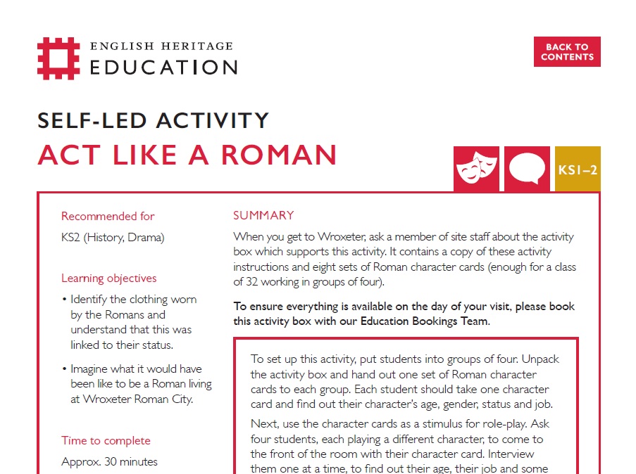 Act Like a Roman (KS1-KS2) - Wroxeter Roman City Teachers' Kit