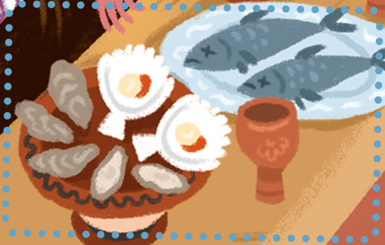 Lullingstone wasn’t far from the sea, so fresh fish was probably on the menu. Seafood was served after the main course, and archaeologists have found periwinkle and oyster shells at the site.
