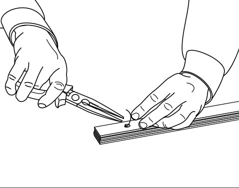 Lay out 10 craft sticks and make a hole in each one, about 3cm from the bottom, using a pin. Thread the pin (or you could use a paperclip instead) through the holes and twist the end with a pair of long nose pliers to secure it.