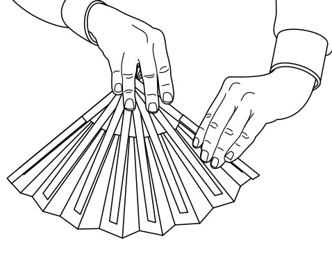 Cut off the excess of the second sheet of paper and glue the edges over at either end of the fan. Lay the fan out flat and, using felt-tip pens or colouring pencils, create your design on it.