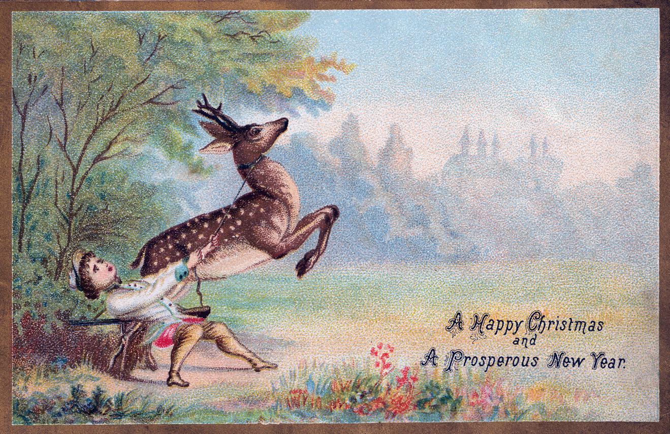 The first proper Christmas card was printed for and written by Henry Cole at Christmas in 1843. It was part of an older tradition of sending handwritten greetings, particularly around the New Year. Like Charles Dickens’ A Christmas Carol (also published in 1843), the Christmas card was part of the new Victorian culture of Christmas.