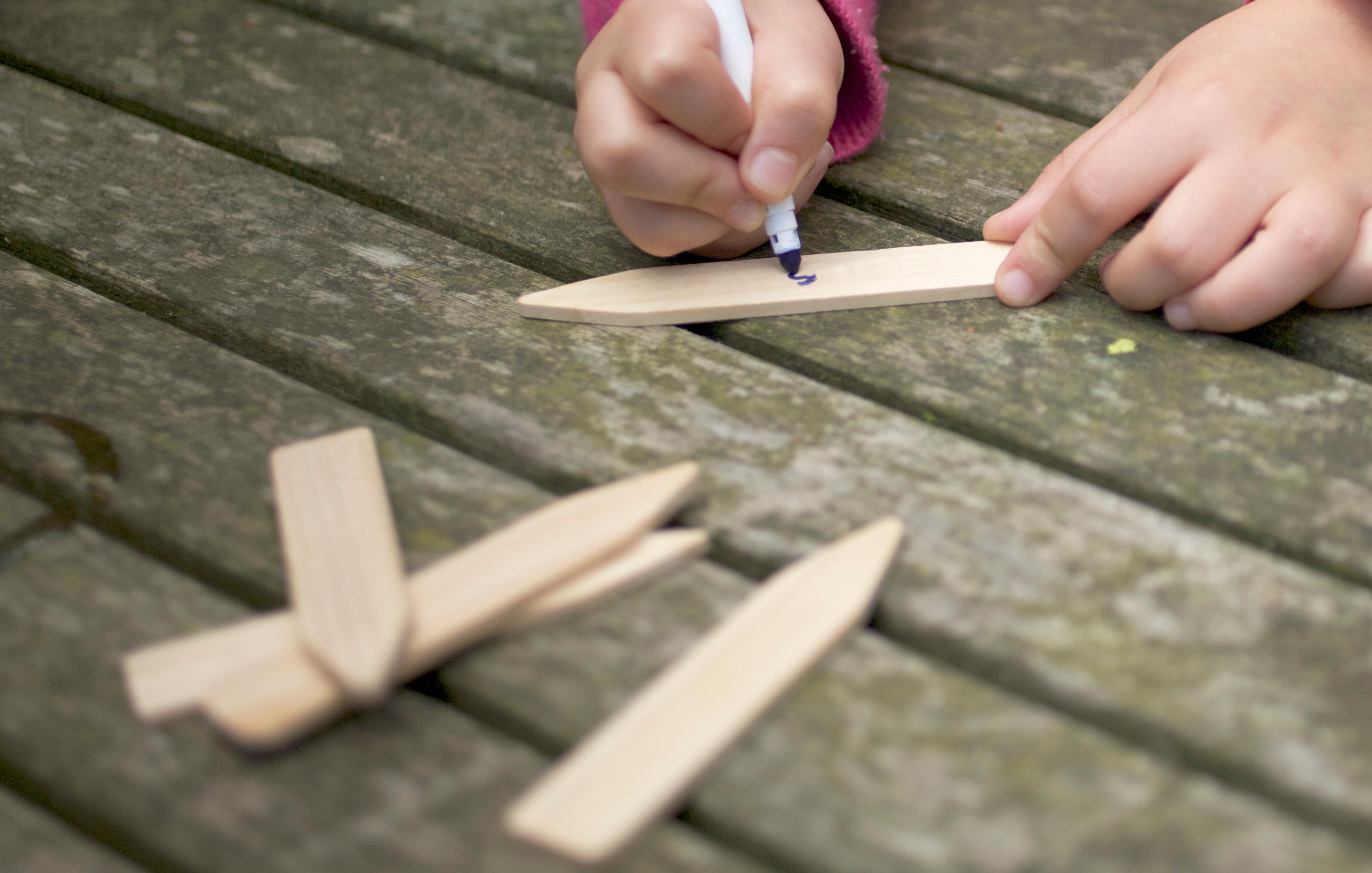 Write on the labels or lolly sticks using a permanent marker or pencil to create some labels for your plants, and stick these into the container next to each one. Now you can stand back and admire your mini monastic herb garden!