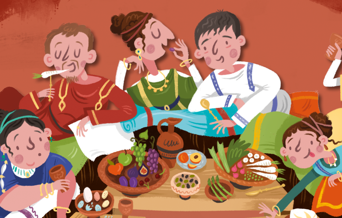 An extravagant feast is taking place at Lullingstone Villa in the 4th century – and you're invited! The guests are wearing their finest clothes and eating expensive imported food and drink, but what is for dinner?