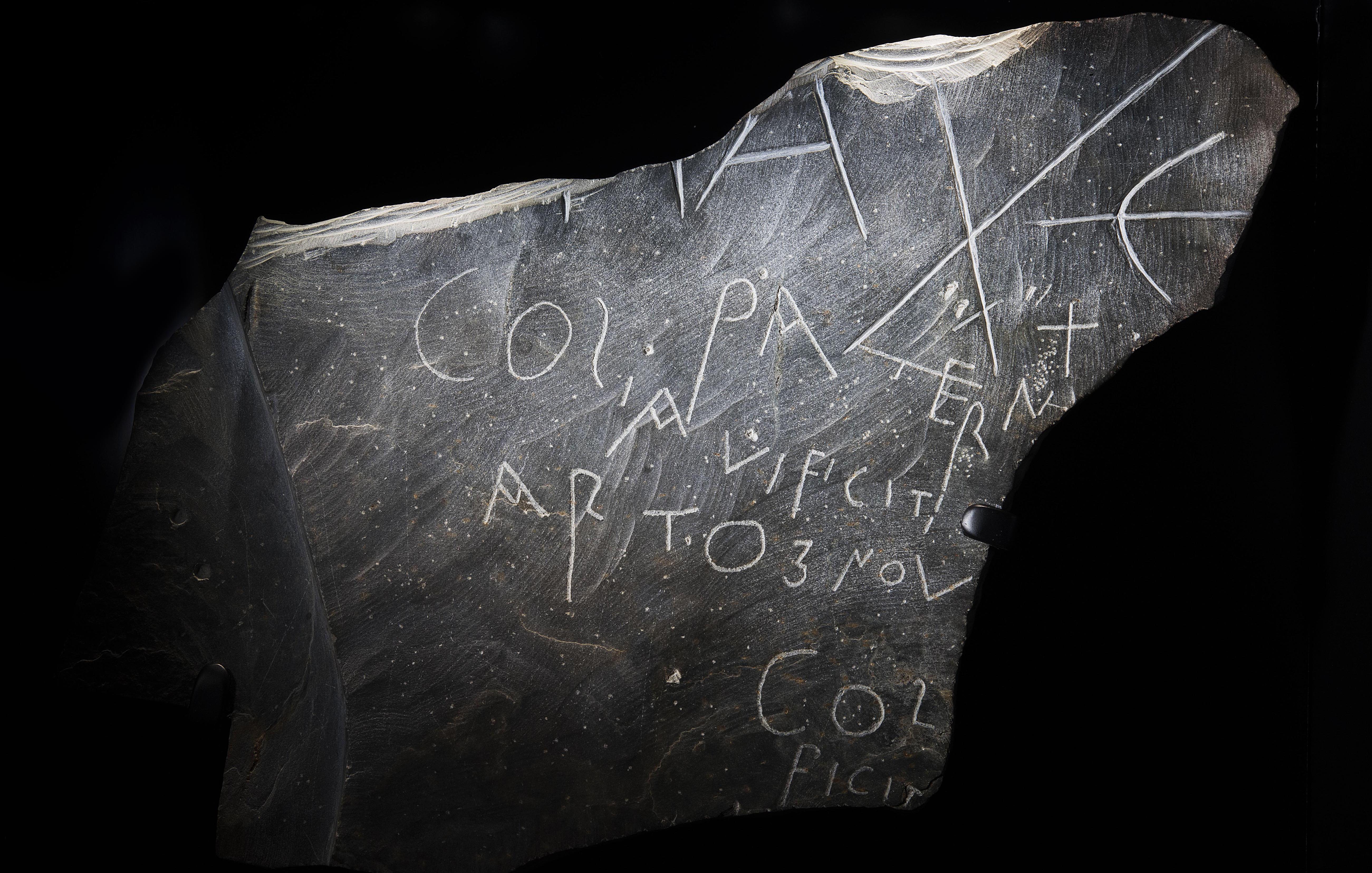 In 1998, archaeologists found a piece of slate at Tintagel with Latin writing on it (pictured). Some people called Artognou, Coliavus and Paternus had scratched their names on it, meaning this could be graffiti from the 6th century! The stone had been later used as a cover for a drain, but the inscriptions can still be seen. Can you spot the three names?