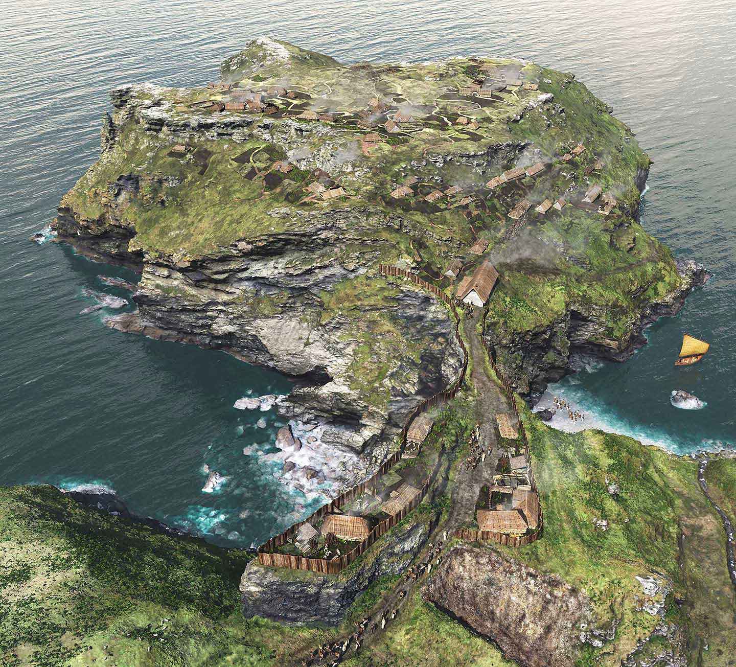 Because the settlement was connected to the mainland only by a narrow neck of land, it could be easily defended. It had excellent views over the sea, and a large protective bank and ditch.