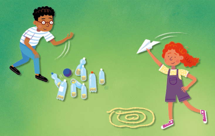 4.  Stand around 5 metres back from the pins and count how many goes it takes you to knock down all the pins by throwing a ball at them (try using a tennis ball for this). The player who takes the least number of goes is the winner.