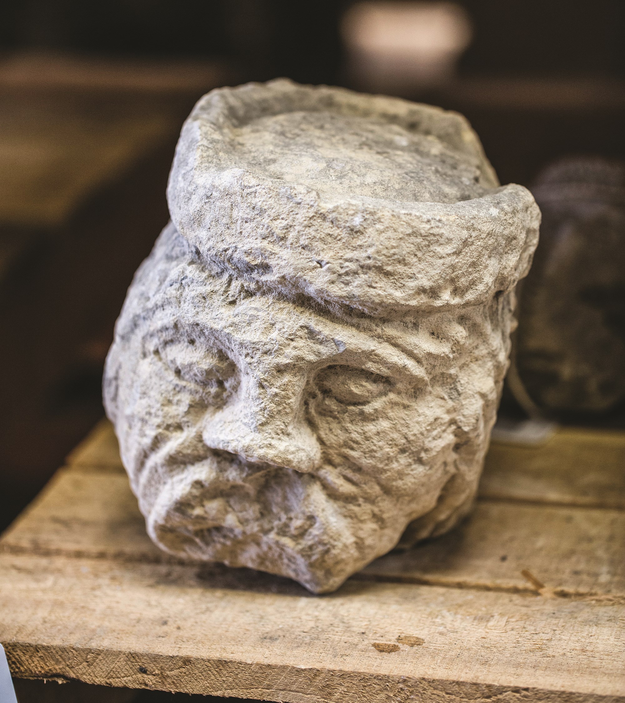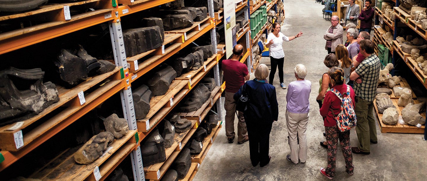 Carved stones excavated at Monk Bretton Priory near Barnsley in the 1920s occupy another set of racking. Susan explained that, once exposed to the air, the stones were covered in 'a lovely layer of South Yorkshire grime', which they have no intention of removing. 'Cleaning would impact on the surface and we'd lose detail, so we'd just have a piece of geology, not a piece of architectural masonry.'