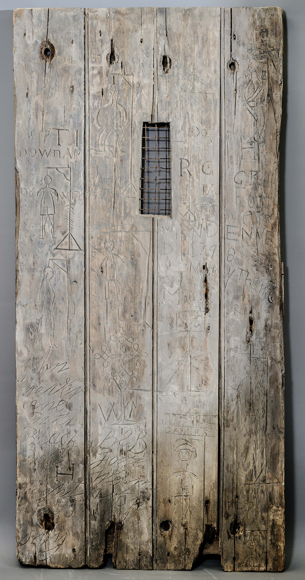 St John's Tower, which had a commanding view over the vulnerable northern end of the castle, would have been guarded by six to 12 men on duty at any one time, with one or two stationed on the tower itself. With hours to kill, it seems those men put their artistic talents to use, carving graffiti into the door with knives or bayonets.