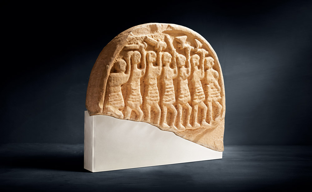 Norse invaders came to Holy Island in AD 793. This was their first significant attack in western Europe and its terrifying nature was widely reported across the continent. Neither the faith of the inhabitants nor the power of St Cuthbert, their saint, had been able to protect one of England’s holiest sites. Might this enigmatic stone, carved a few years later, record the disaster? It was almost certainly a grave marker, but its imagery of warriors with swords and axes suggests it was more than simply a memorial. On the other side are praying figures: possibly a scene of the Apocalypse. Yet perhaps the carving drew attention to Christ’s warning not to interpret every battle as a sign of the coming of the Last Judgement. As such, we may read a deeper response to the event: a symbol of defiance and resilience. This stone was seemingly lost to time, along with the original monastery. Yet the monastery was refounded in the early 12th century and visitors can now make a pilgrimage there, with the stone among the artefacts taking centre stage.