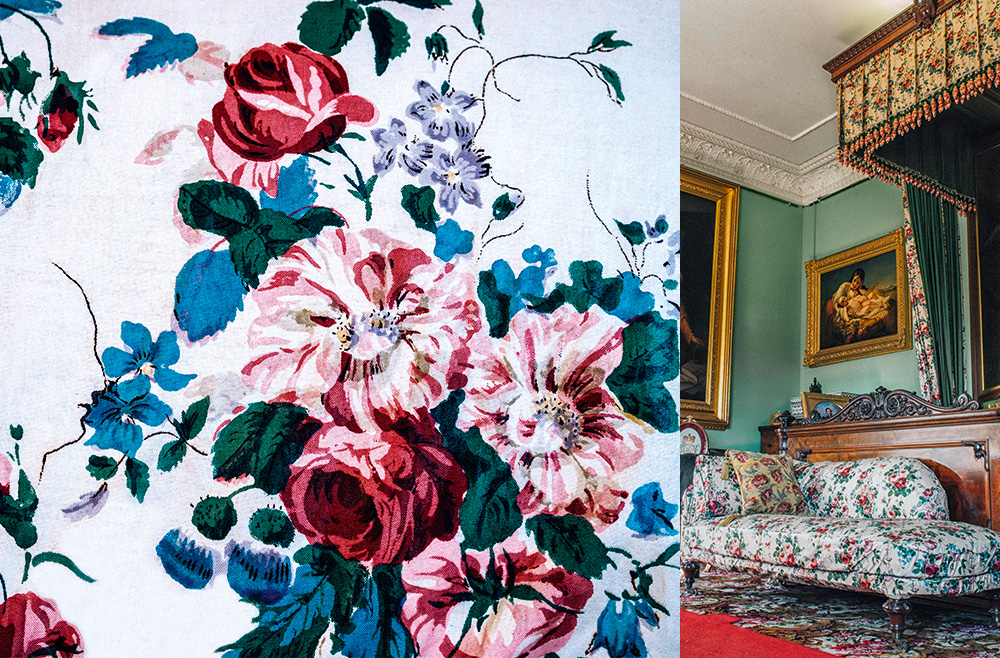 In the centre of Osborne, Queen Victoria and Prince Albert’s palatial holiday home on the Isle of Wight, is their bedroom. This very private room, still full of the pictures and furniture that the royal couple placed there, hides an altogether more intimate demonstration of their intensely loving relationship. The curtains and furniture covers are made of glazed cotton, known as chintz, block-printed with a design of roses and foliage. What is totally unexpected is that the design perpetuates the loving gaze of Victoria (who faces right) and Albert (who faces left) in outline profiles made up of the tendrils emerging from the flowers. These profiles can only be brought into relief by a discerning eye. In 1954 Victoria and Albert’s private rooms at Osborne were unlocked for the first time since Victoria’s death and visitors were allowed in. By the 1960s the original, 19th-century, floral chintz had deteriorated and a copy of the profile chintz was used as a suitable replacement – a very happy choice of fabric. At Osborne, in their most intimate room, Victoria and Albert still gaze lovingly at each other.