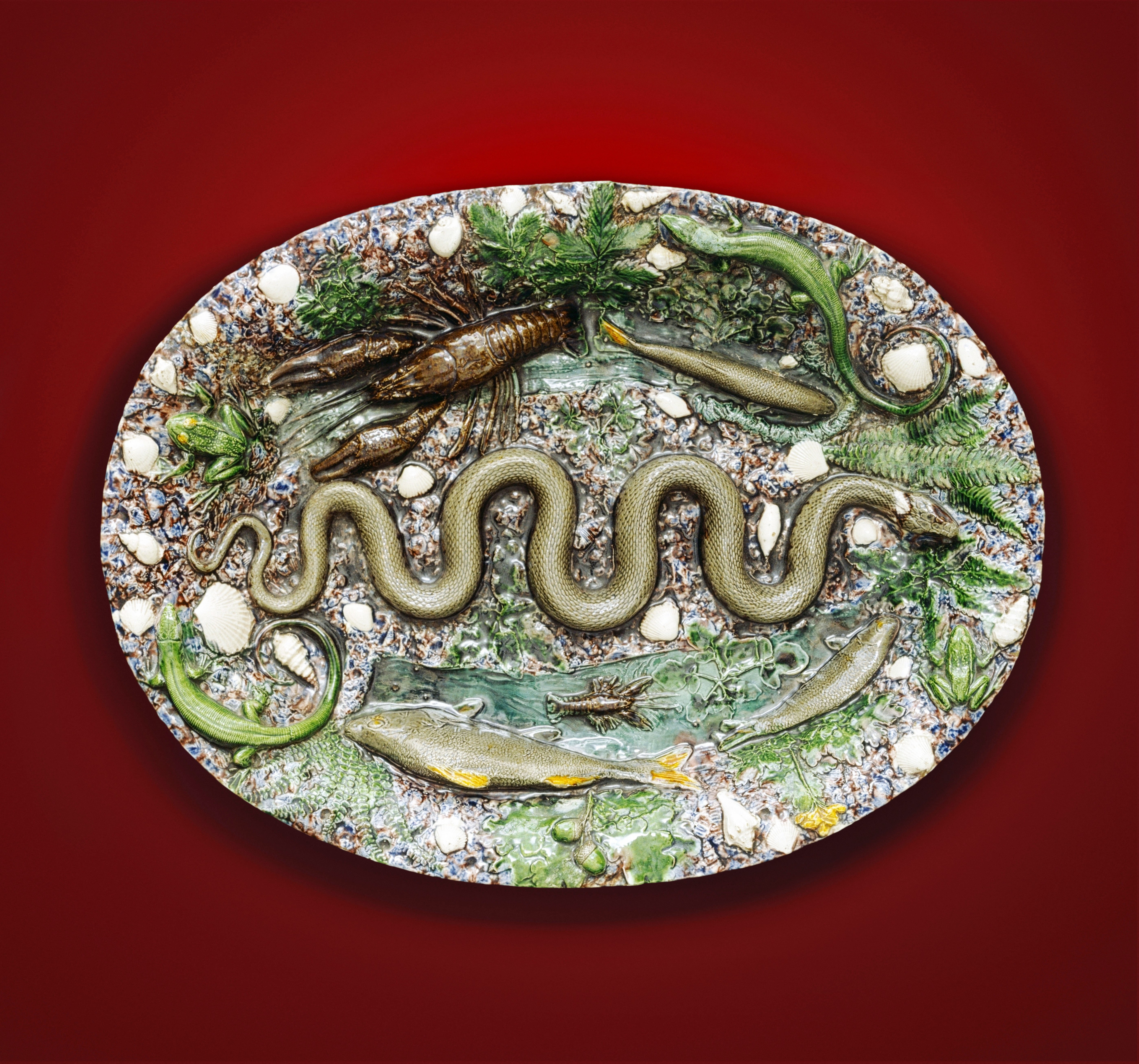Palissy’s talent led to his appointment, in around 1565, as ‘inventor of rustic pottery’ to France’s King Charles IX and the Queen Mother, Catherine de Medici, for whom Palissy built a pottery grotto in the garden of the Tuileries Palace in Paris. He enjoyed great success until, after three decades of royal favour, he was imprisoned during the French Wars of Religion and died soon afterwards.