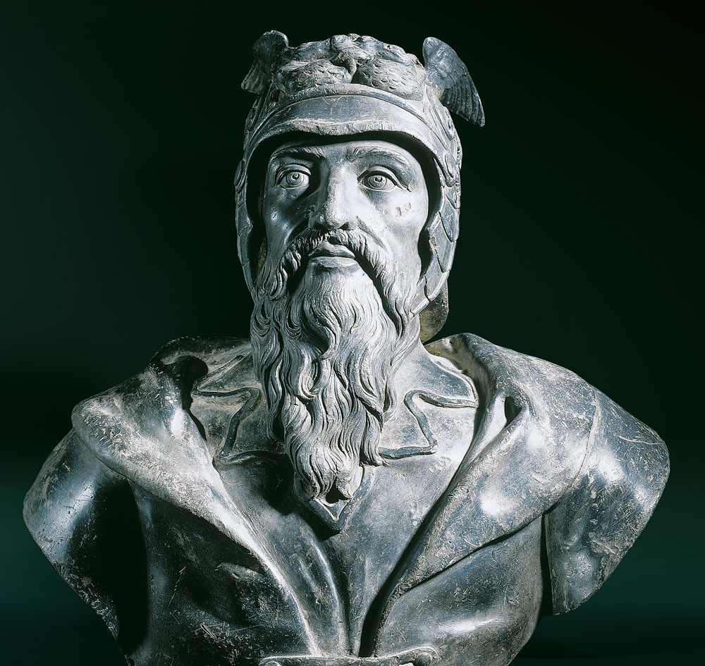 Among the objects on display at the castle is this lead bust of William the Conqueror, which was made in around 1740. The bust is a contemporary copy from a series of sculptures by John Michael Rysbrack depicting the kings of England, commissioned by Queen Caroline, consort to George II. The series was, at least in part, about affirming their royal lineage and cultural identity. It paved the way for the wider trend in ‘establishing’ ancestry, which remained fashionable throughout the 18th and early 19th centuries.