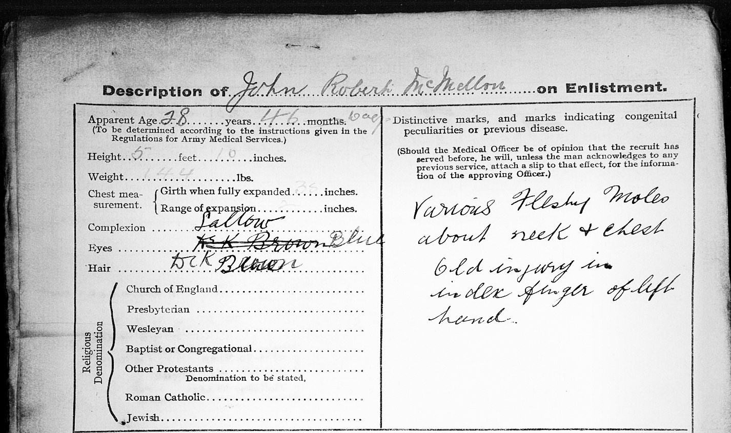 We can see from McMellon's record that he had various fleshy moles about his neck and chest and an old injury on the index finger of his left hand.