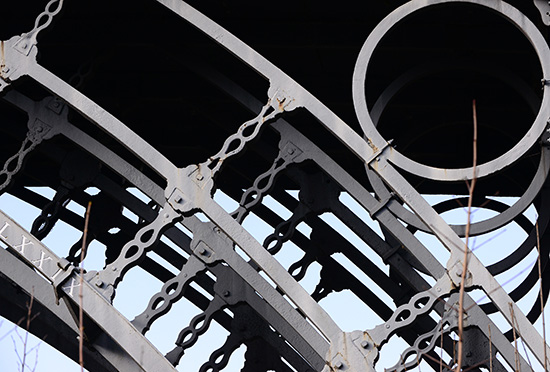 Image: A view seen behind railings that show the year the bridge was erected. Copyright Getty images.