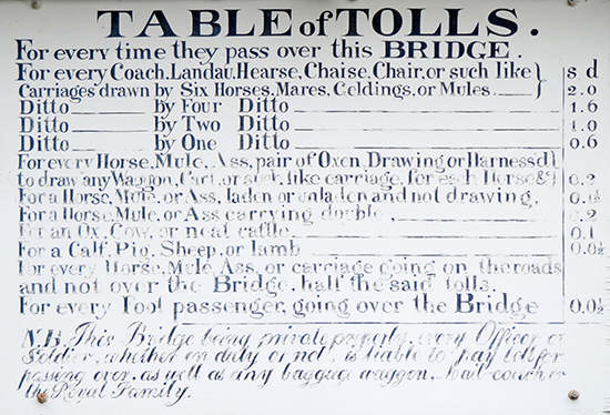 Image: Table of Tolls for the Iron Bridge.