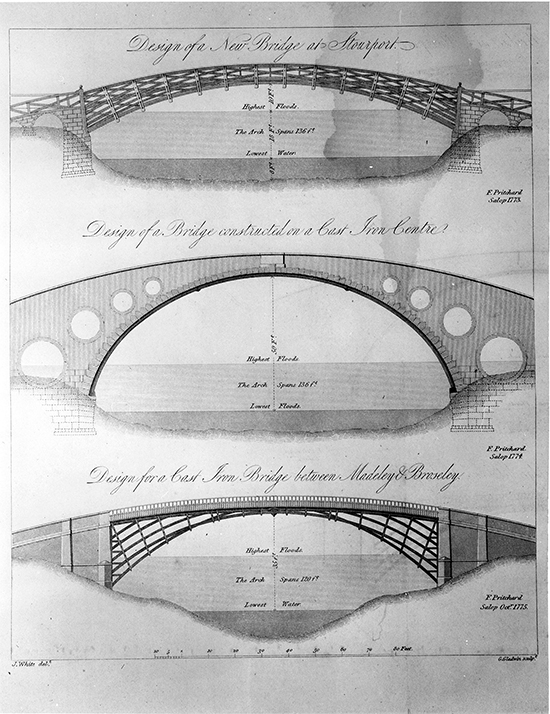 As industry around the gorge grew, so did the need for a strong and durable bridge to transport goods across the river. In 1773, Thomas Farnolls Pritchard - an architect from Shrewsbury - had a bold idea. Combining engineering expertise and new iron-casting techniques, he proposed the world's first iron bridge, which would link the parishes of Madley and Benthall over what was one of the busiest rivers in the country. Pritchard's designs were approved by Act of Parliament.