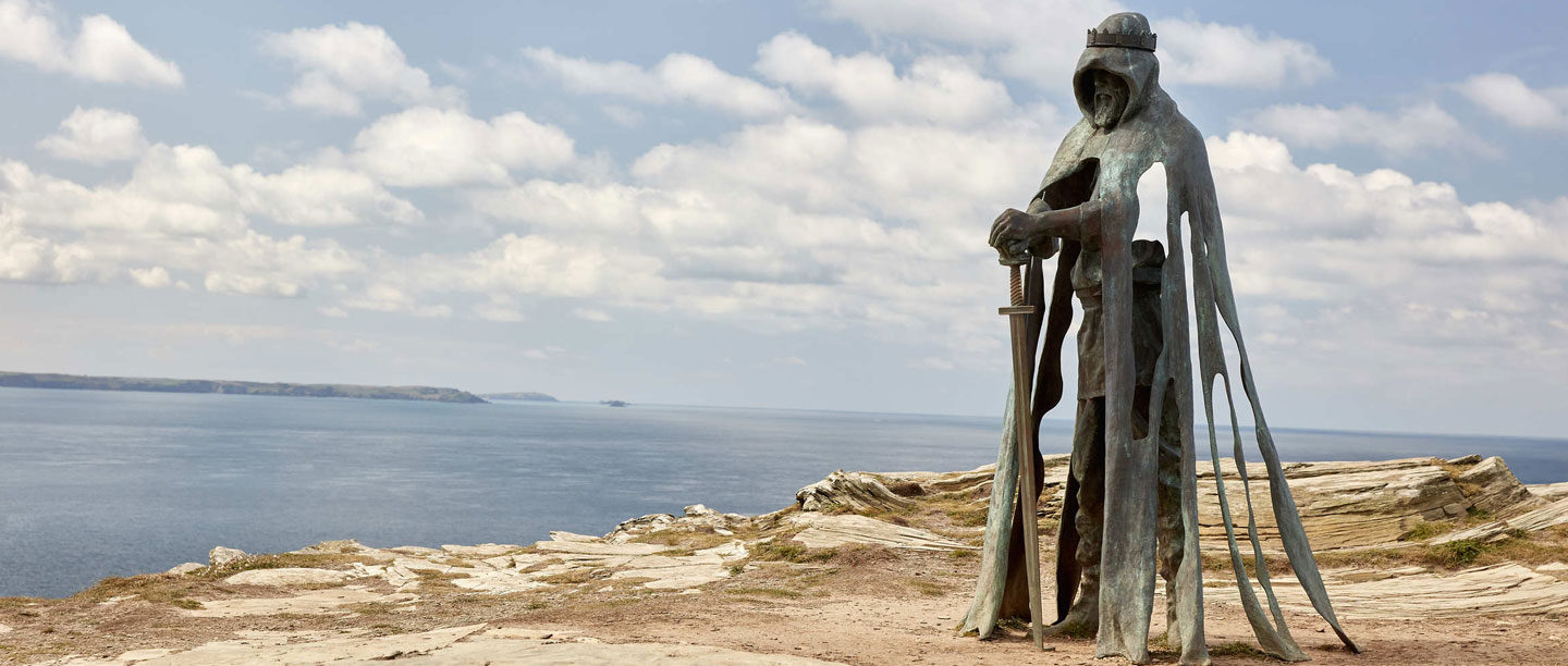 Dragon-slaying Tristan was the nephew of Cornish King Mark, who lived at Tintagel. He went to Ireland to collect his uncle's bride, the beautiful Isolde, famed for her healing skills. But both Tristan and Isolde drank a magic love potion by mistake, and fell hopelessly in love. Isolde married Mark all the same, yet continued to love Tristan in secret. Eventually the king found out, and Tristan was exiled to Brittany, where he was badly wounded. So he sent for Isolde to heal him; her ship was to show white sails if she was aboard. Tristan's jealous new wife told him its sails were black, and he died of despair; Isolde then died of a broken heart.