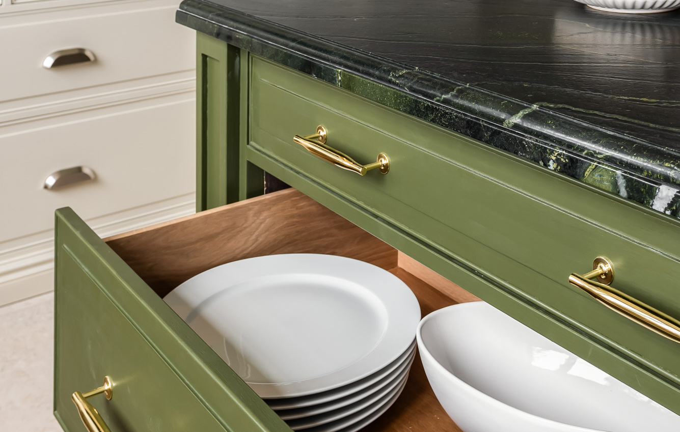 When designing the range of cabinetry, the design team gathered inspiration from many English Heritage historic sites including Apsley House, Down House and Brodsworth Hall. Our creative journey led them to some unexpected sources, from the charming cornice on a maid’s long-forgotten wardrobe to a delightfully panelled window shutter at Darwin’s Down House.