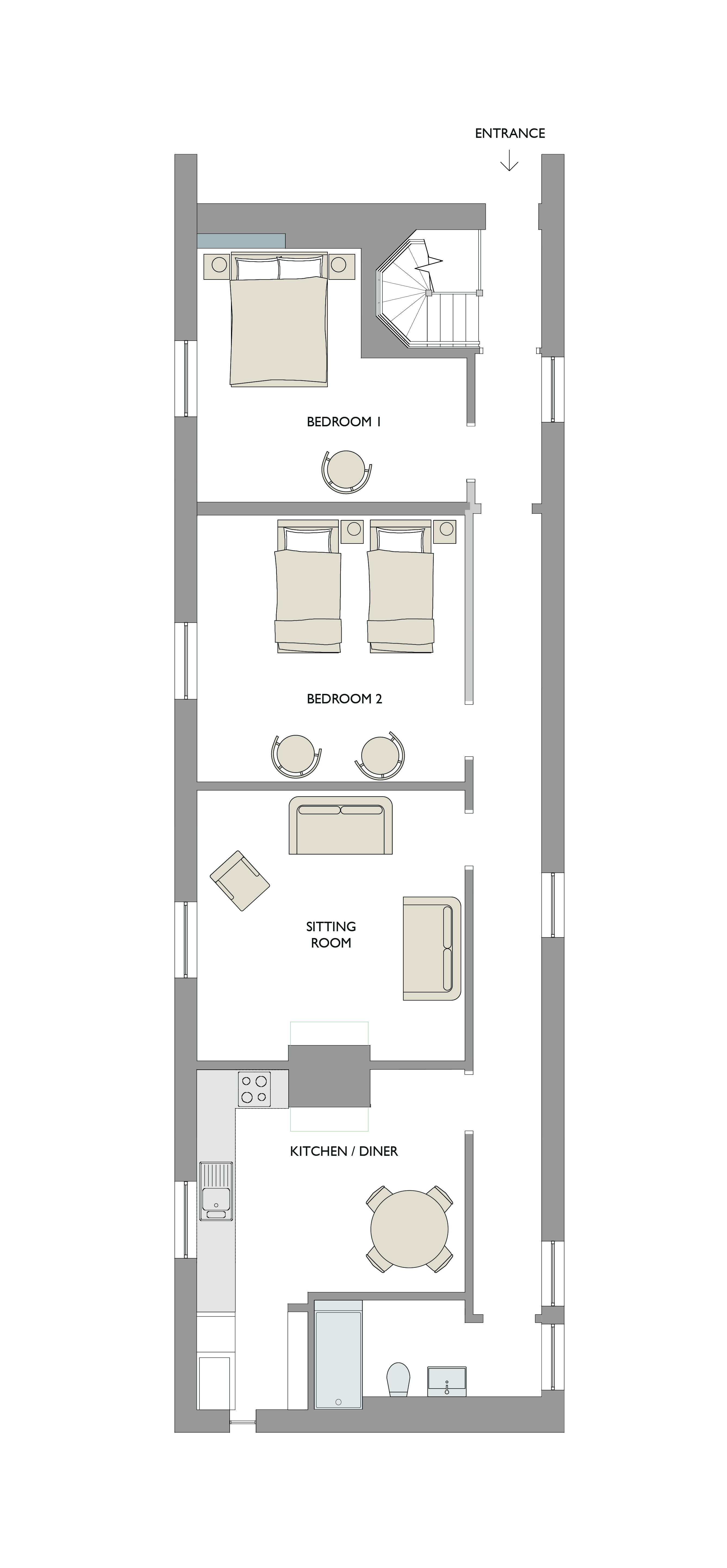 Hover over the image on the right to zoom in on the floor plan of The Greenhouse Apartment.