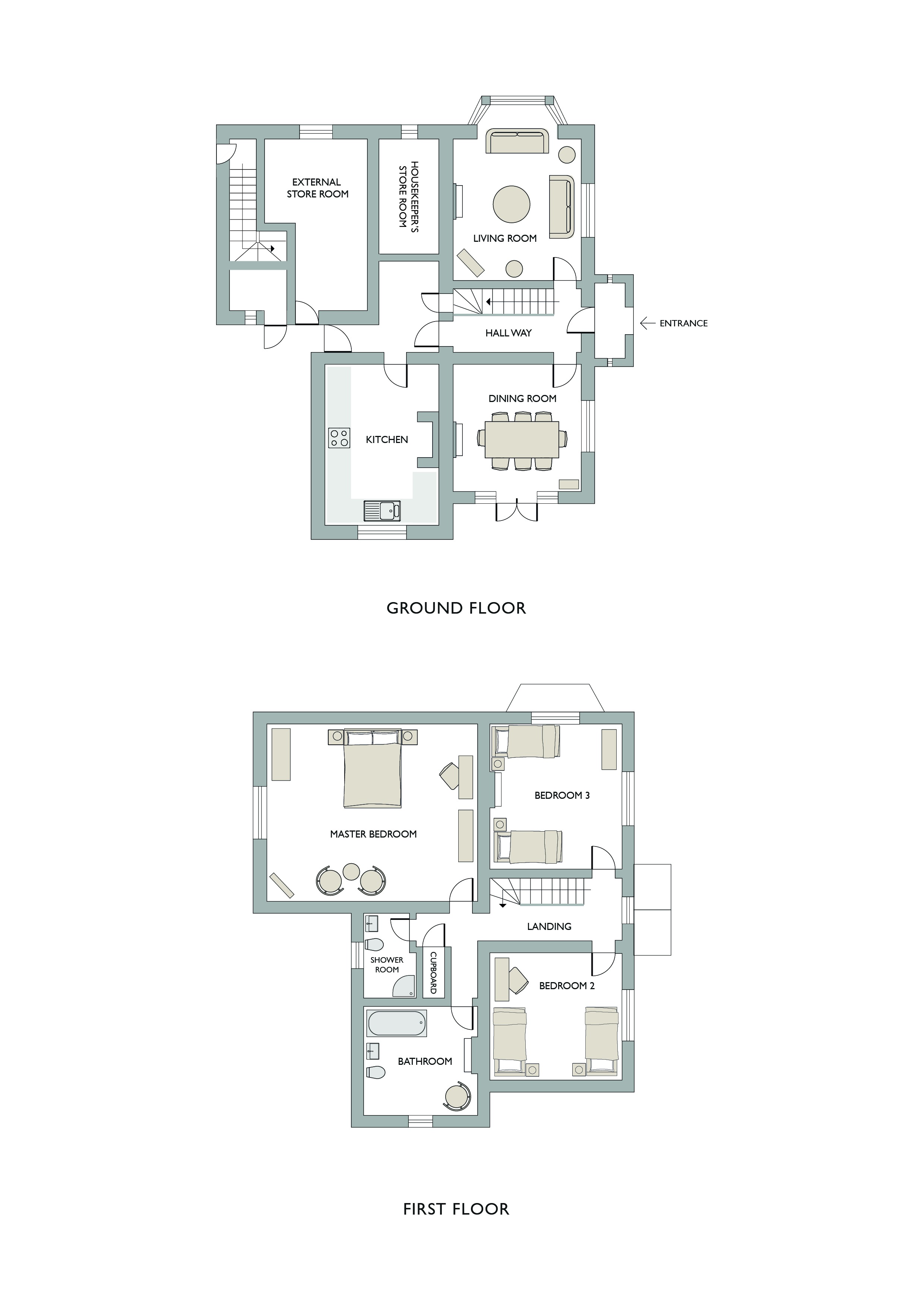 Hover over the image on the right to zoom in on the floor plan of The Head Gardener's House.