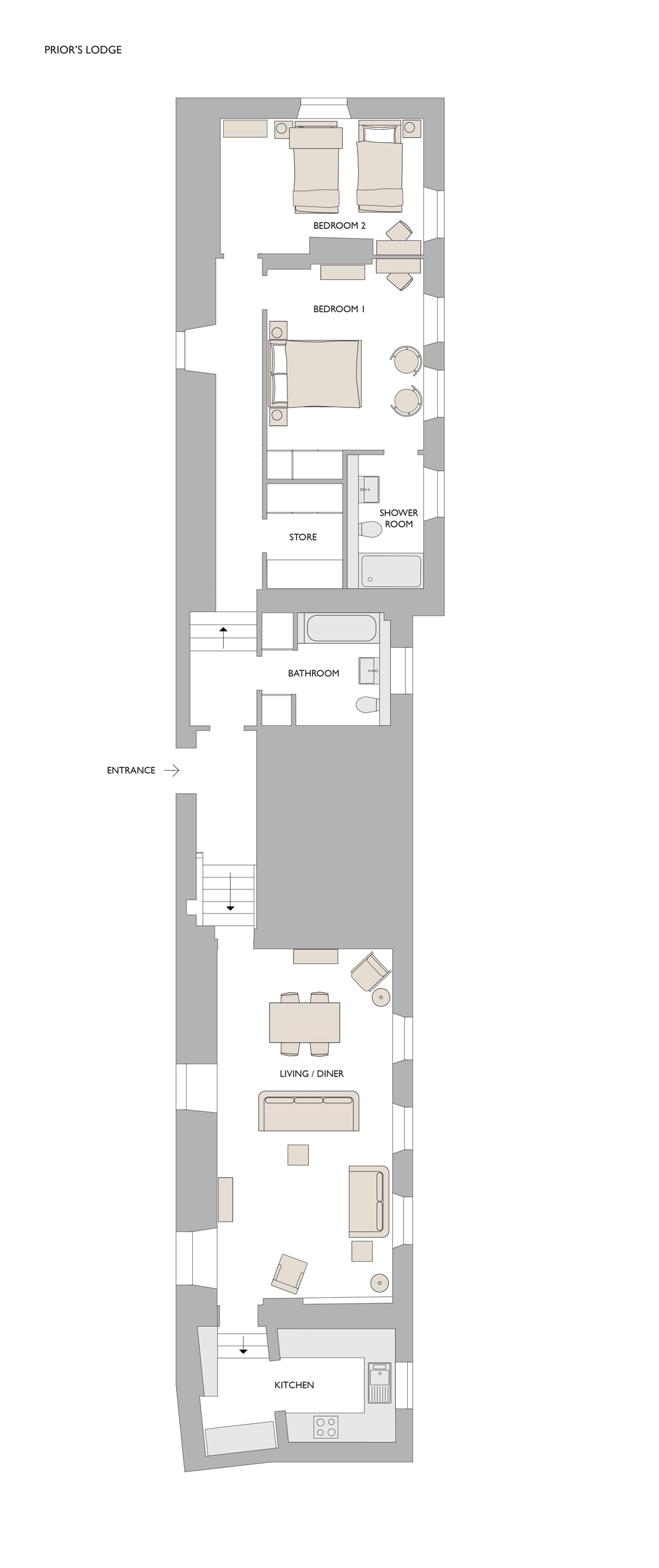 Hover over the image on the right to zoom in on the floor plan of Prior's Lodge.