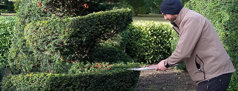 Daniel Hale, Head Gardener at Brodsworth Hall, shows how to clip a topiary form.