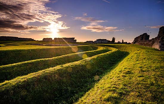 Walk in the footprint of the Roman empire at forts along Hadrian's Wall in the north of England. Offering spectacular views of some of the most impressive landscapes in the country.