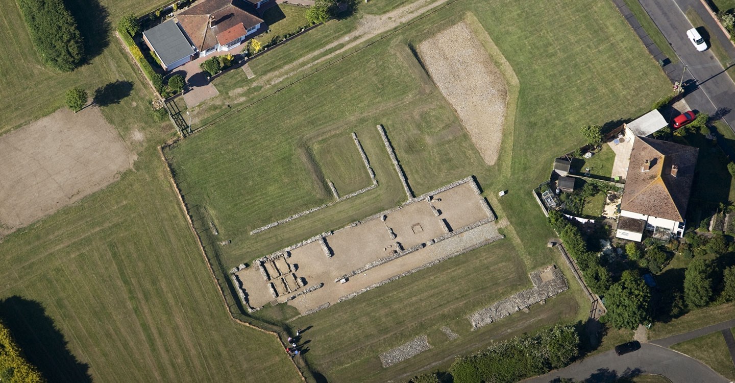 The partial excavated remains of a Roman ‘Saxon Shore’ fort, including wall and ditch sections and building foundations.