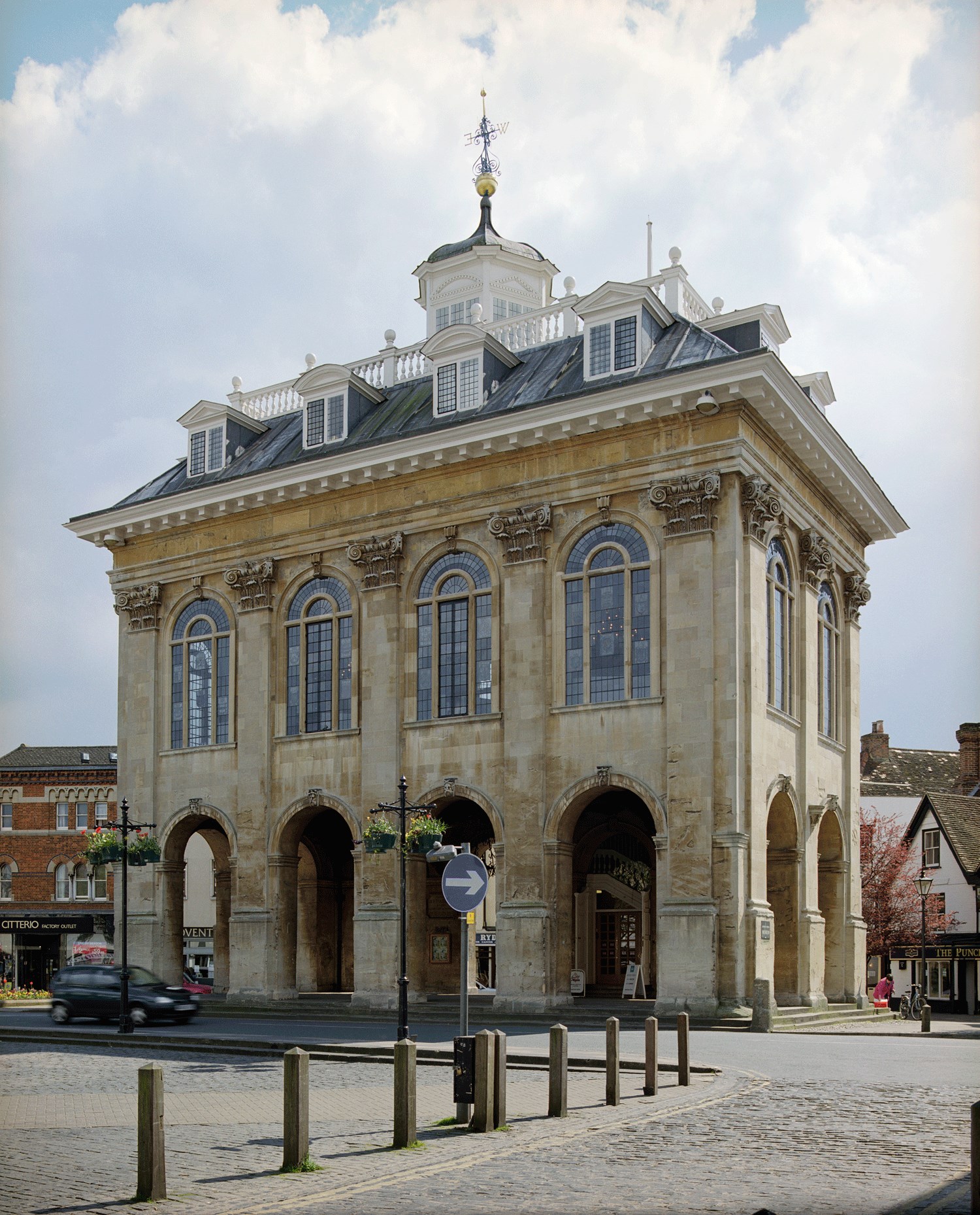 The County Hall has dominated the market place of Abingdon, south of Oxford, since the late 17th century. Designed by a protégé of Sir Christopher Wren, this splendid Baroque building was erected between 1678 and 1682. It housed a courtroom on the first floor, raised on arches above a market space. It is now home to the Abingdon County Hall Museum, and there are fine views from the rooftop overlooking the market square.