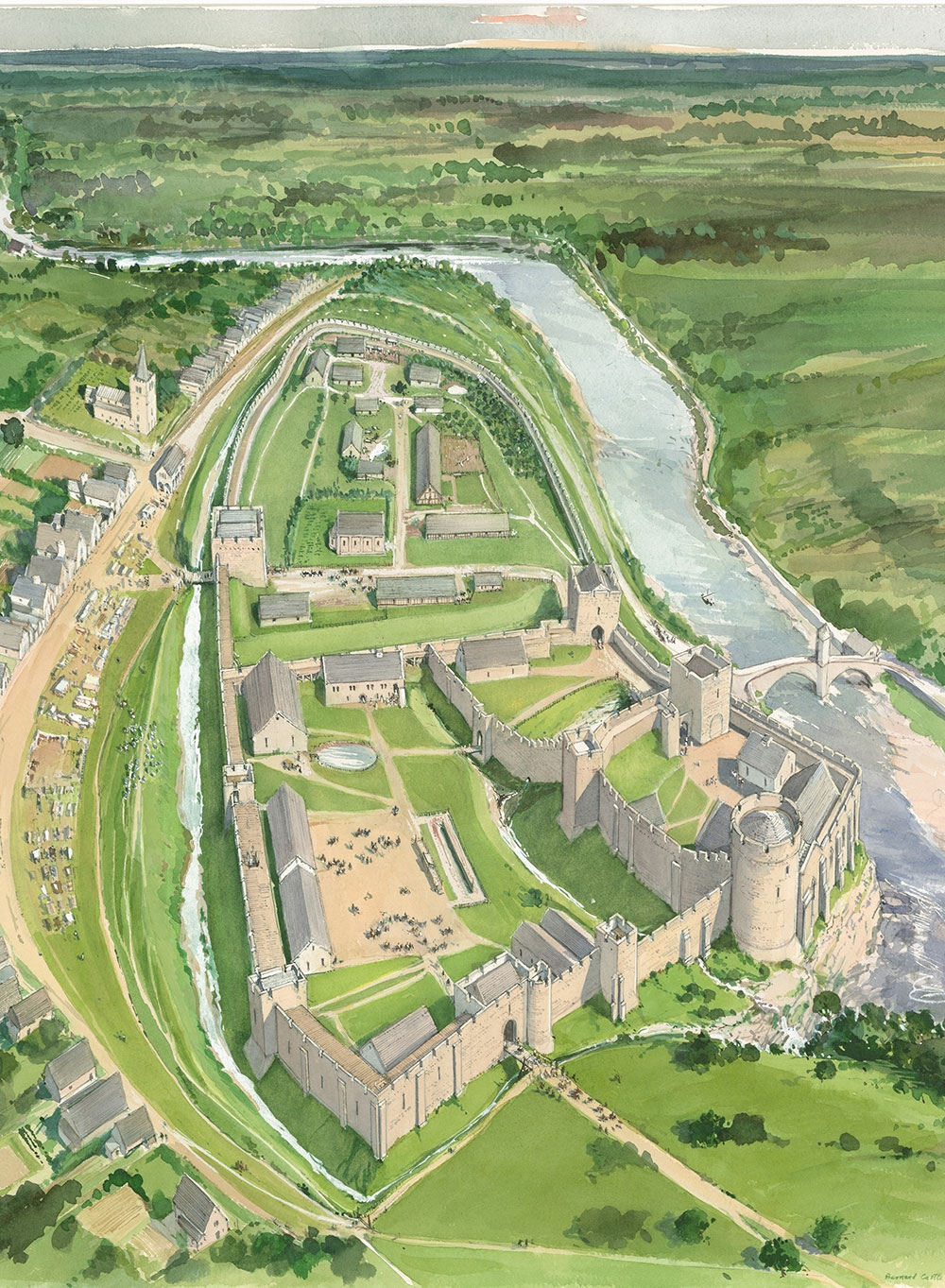 Guy de Balliol died in 1133 and was succeeded by his nephew, Bernard, from whom the castle and town derive their name: Castrum Bernardi, or Bernard’s Castle. It was he who enlarged the castle to its present extent, began to rebuild it in stone, and founded the town that surrounds the castle on its south and east sides.