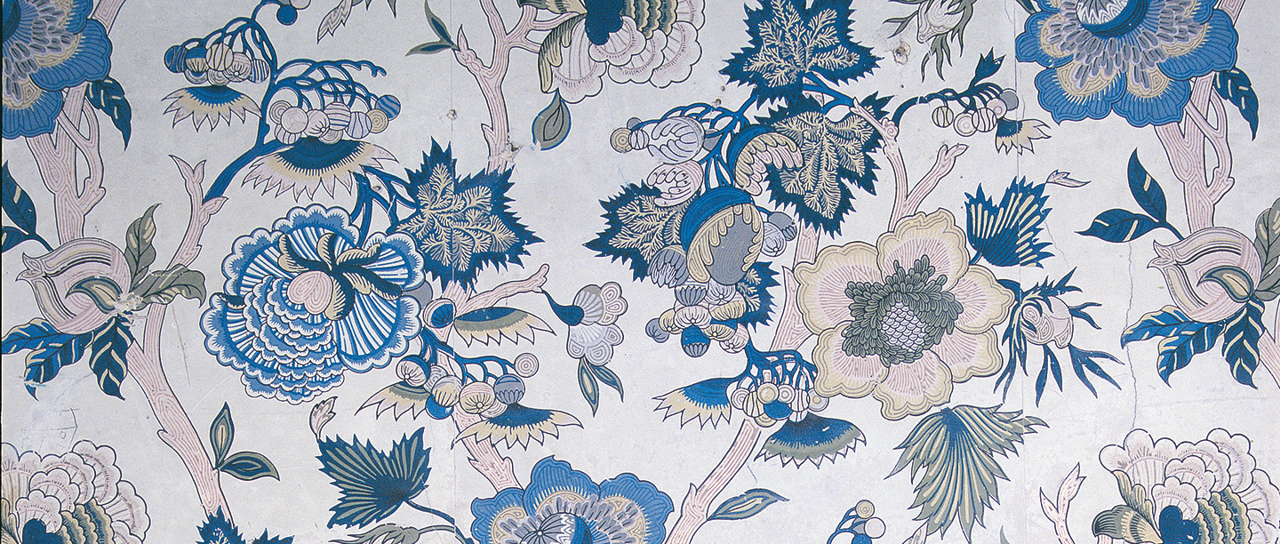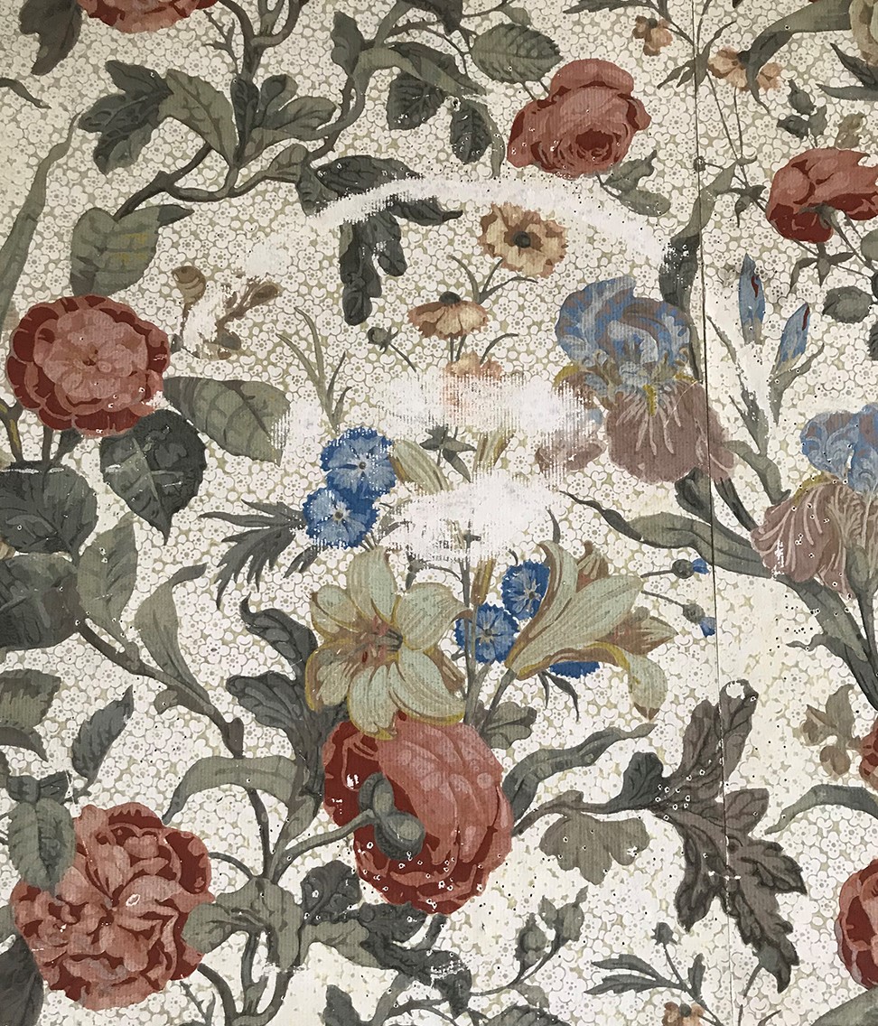 Multi-coloured floral wallpaper, possibly of French origin, found in the east and west bedrooms of Belsay Hall.