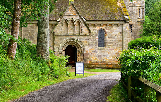 Beside the church, completing the tranquil scene, is a neo-Gothic-style, 19th-century manor house on the site of the old monastic buildings.