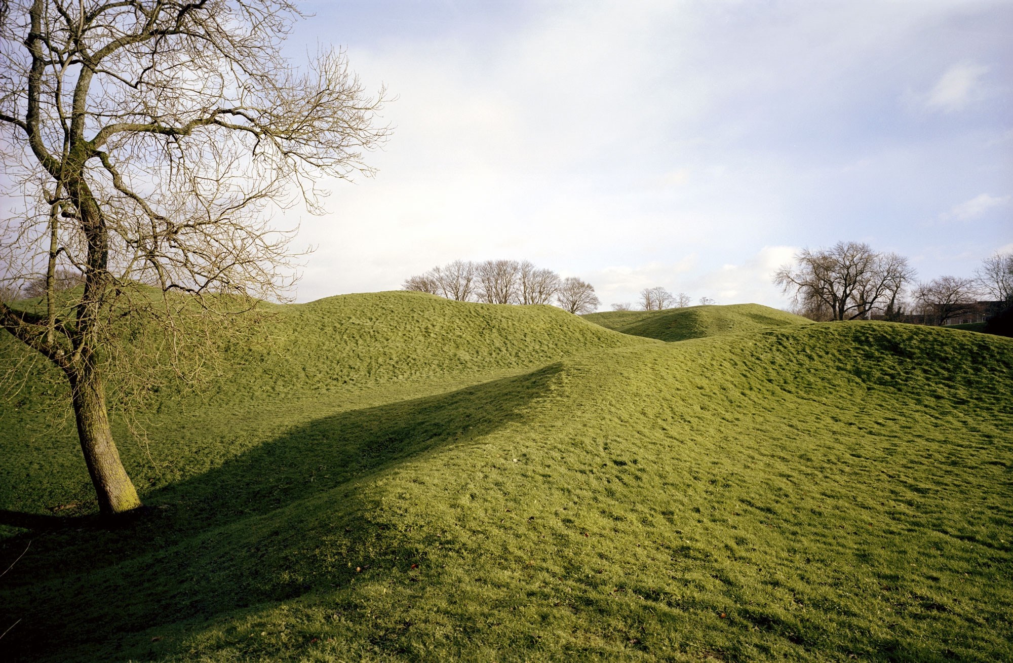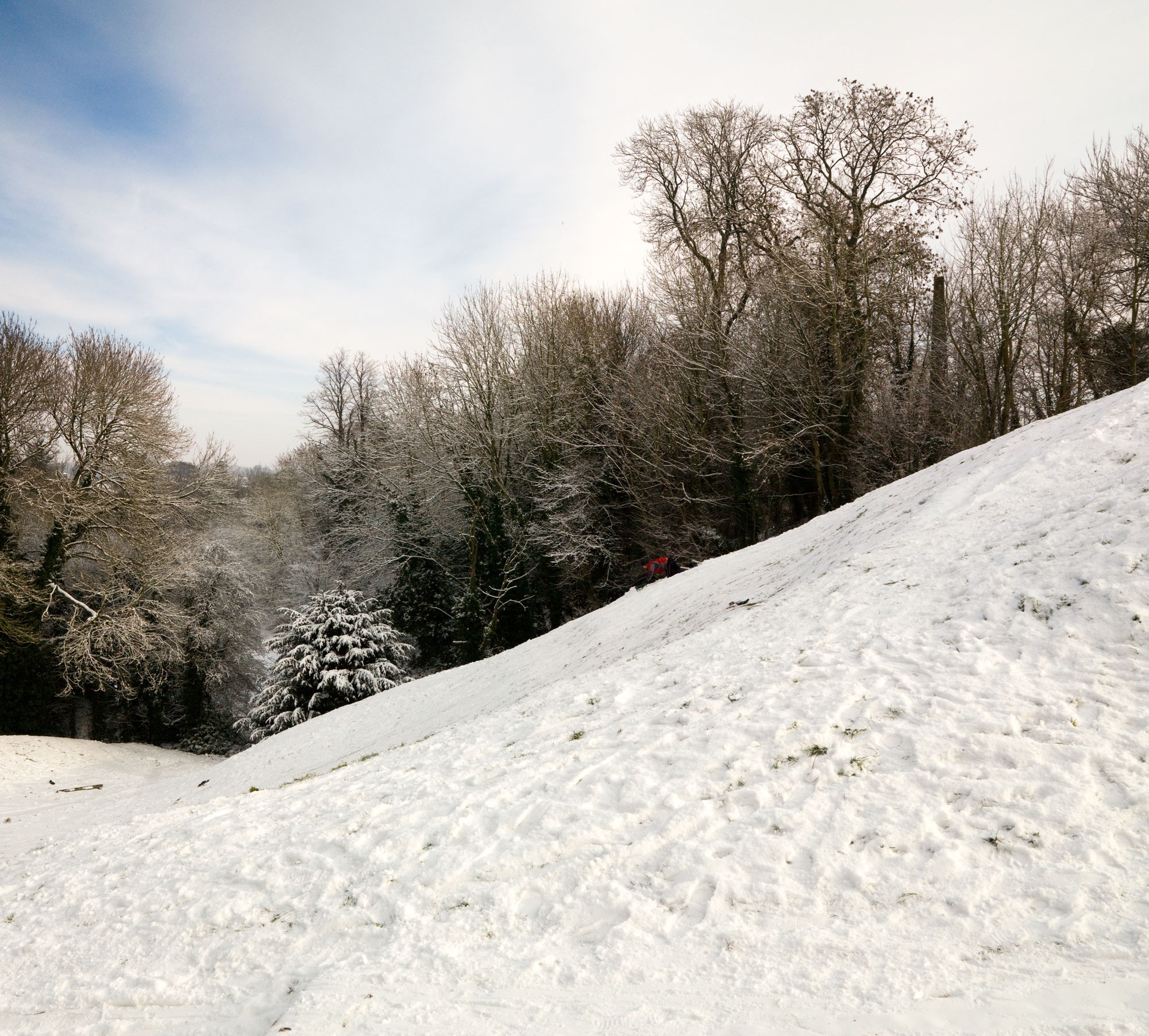 On the outskirts of the Cotswold town of Cirencester are the massive earthwork remains of one of the largest Roman amphitheatres in Britain. It was built in the early 2nd century, when the Roman city of Corinium (now Cirencester) was second only to London in size and importance, with a population of over 10,000. The amphitheatre could hold about 8,000 spectators. After the Roman army left Britain, it was fortified against Saxon invaders.