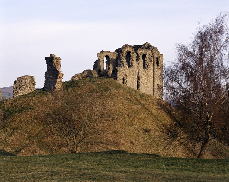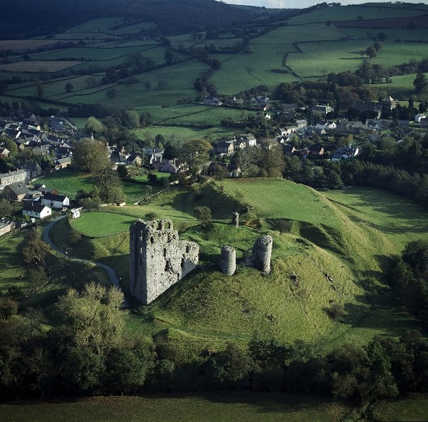 Unusually, the castle's tall 13th century keep is set on the side of its mound. Founded shortly after the Norman Conquest, the castle and nearby settlement prospered until the early 15th century, when followers of the Welsh chieftain Owain Glyn Dwr devastated the surrounding area.