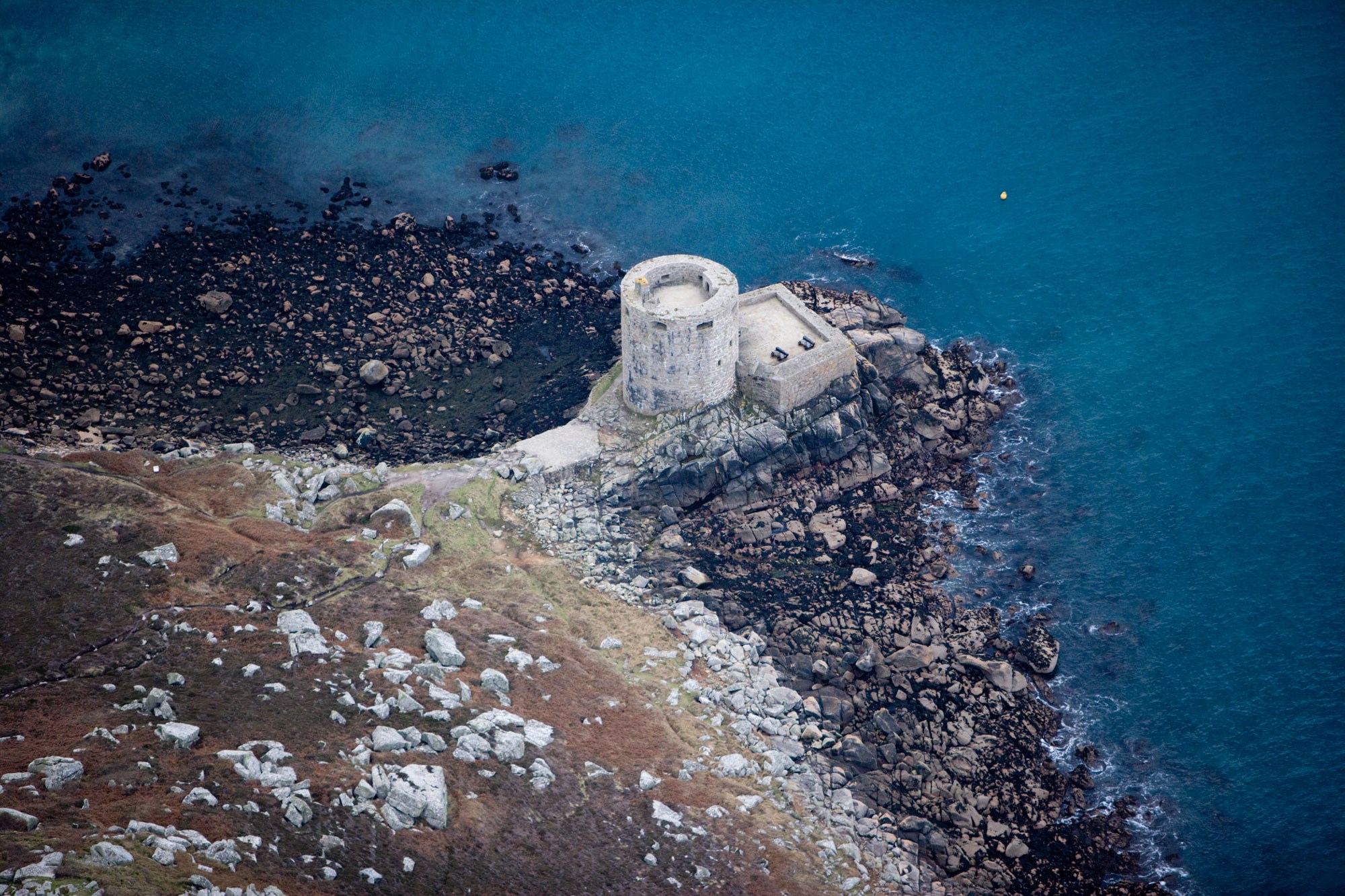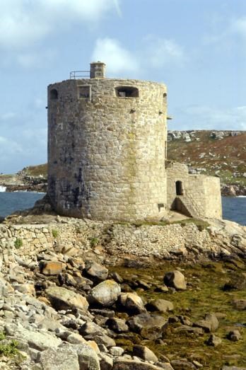 Standing on a rocky promontory guarding the lovely anchorage between Bryher and Tresco, this round tower was built after the conquest of the Royalist Scillies in 1651 and is one of the few surviving Cromwellian fortifications in Britain.