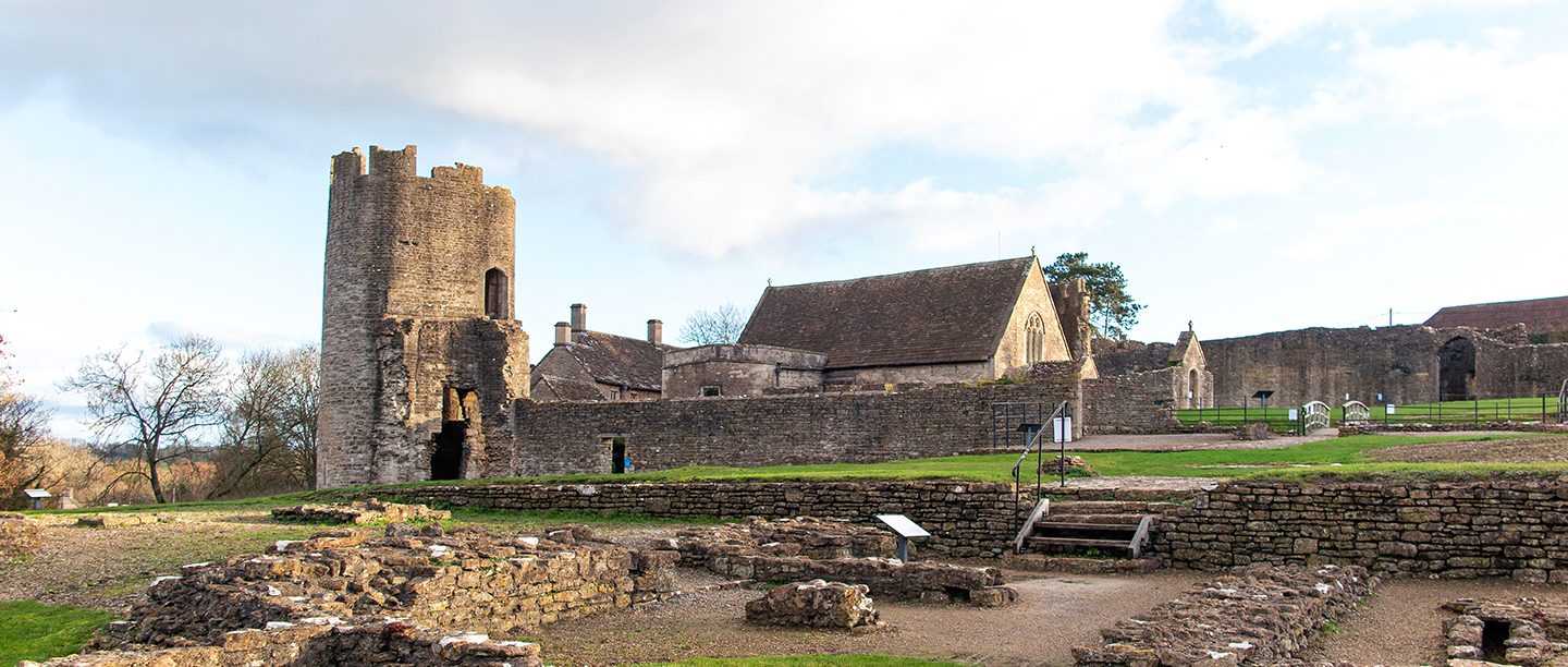 Ruined medieval castle near Bath, with an eventful and sometimes gory family history. Includes a complete chapel with tombs, crypt and coffins.