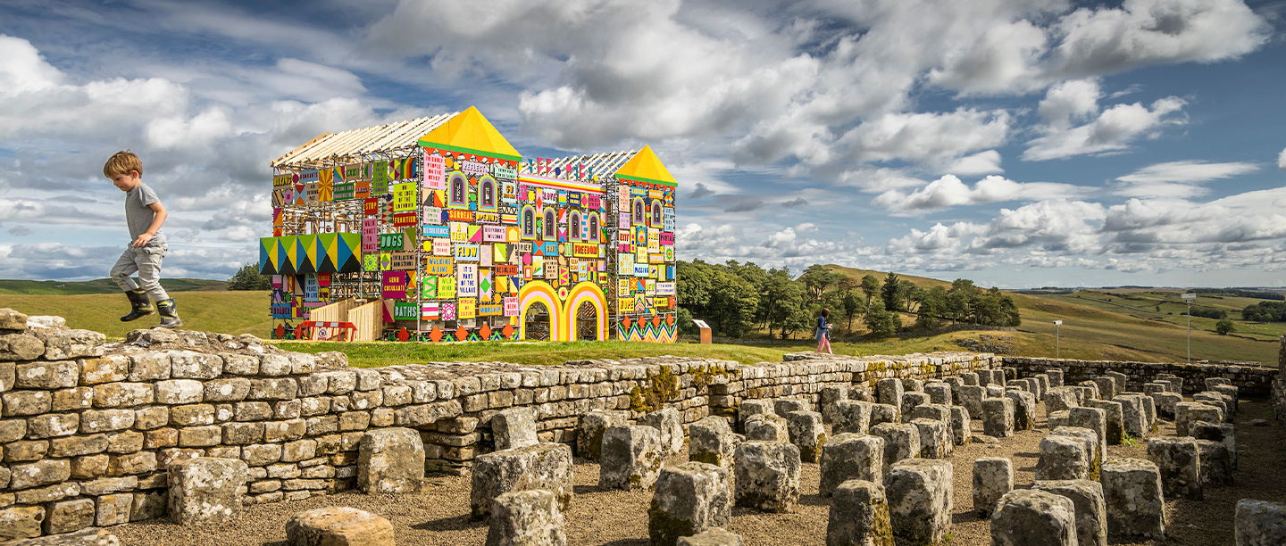 The artwork at Housesteads Roman Fort was produced by internationally renowned British artist and designer Morag Myerscough and in collaboration with the local community and poet Ellen Moran. It was the first artwork to be commissioned as part of our new Creative Programme.
