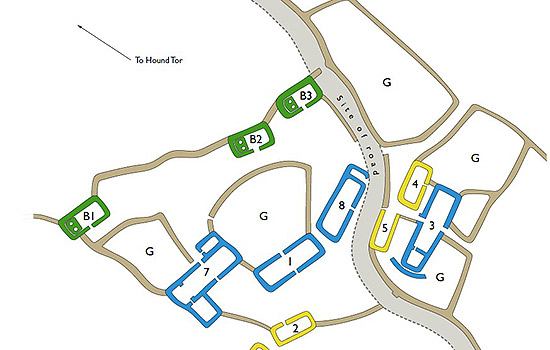 Download this PDF plan of the deserted medieval village to see the layout of longhouses, barns and other buildings.